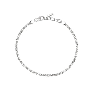 Bracciale catena della collezione Mabina Bizantina da uomo. Colore: argento. Il gioiello è realizzato in argento 925‰ rodiato ed è caratterizzato da una catena bizantina. Chiusura a moschettone.