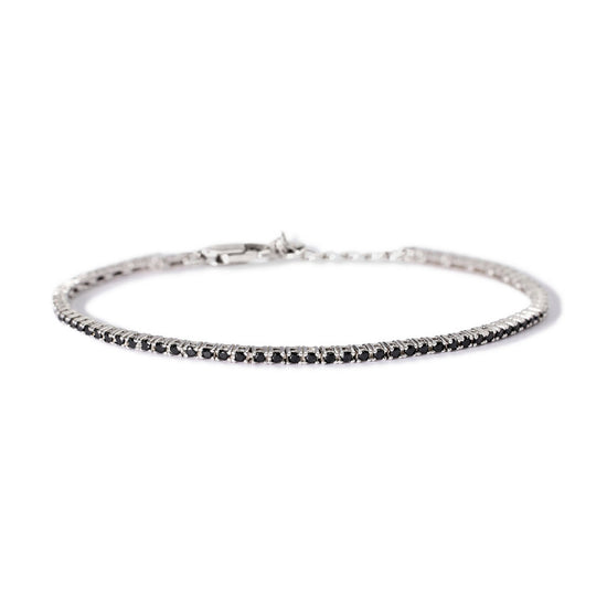 Bracciale tennis della collezione Mabina Uomo Tennis Club da uomo. Colore: argento e nero. Il gioiello è realizzato in argento 925‰ rodiato impreziosito da zirconi neri di 1,5 mm di diametro. Chiusura a moschettone.